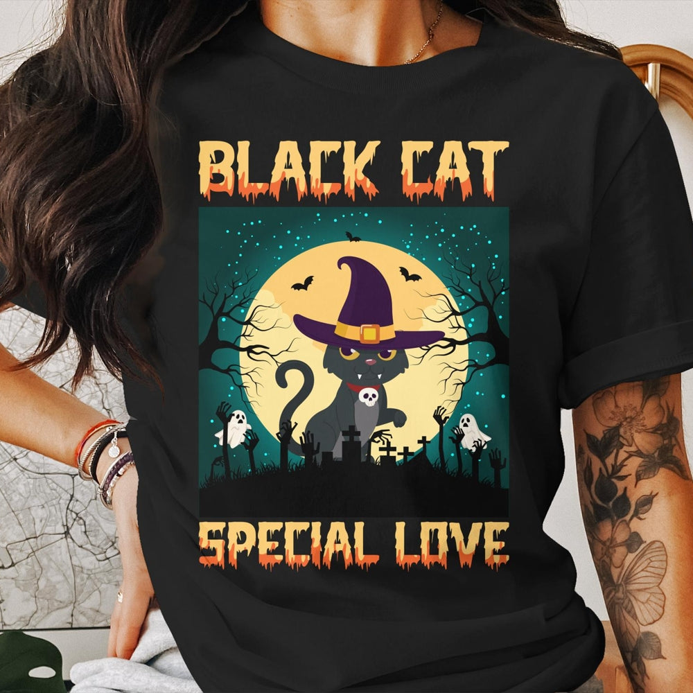 Don't be afraid to show your love for Halloween with this Black Cat Special Love Tee! Featuring a cute black cat graphic, this tee is perfect for any Halloween lover. Plus, it's made with high-quality materials for a comfortable and durable wear. Boo!