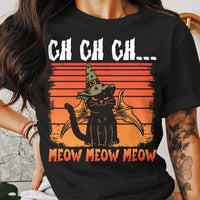 Don't be basic, be feline festive with our Ch Ch Ch... Meow Meow Meow Halloween Tee! This playful tee is the purr-fect addition to your Halloween wardrobe. Embrace the spooky season with a unique twist, while staying comfortable and stylish. Get ready to turn heads and say "meow" in this quirky and fun tee!