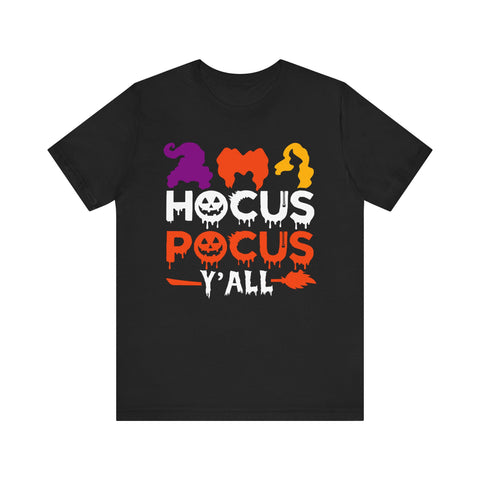 Get in the spirit of the spooky season with our Hocus Pocus Yall Halloween Tee! This tee is perfect for all your Halloween festivities. Show off your playful side and make a statement with this quirky and fun t-shirt. Don't miss out on this must-have item!