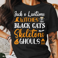 Jack O Lanterns Witches Black Cats Skeletons Ghouls T-Shirt - Black / XS
