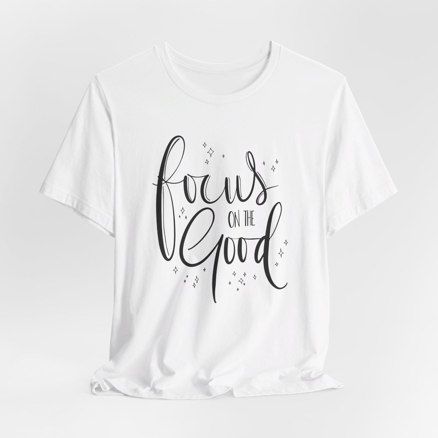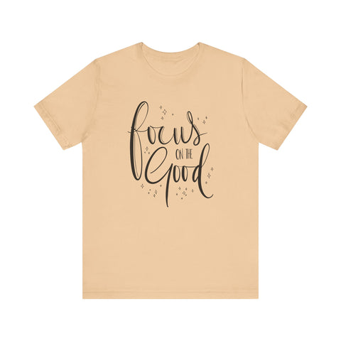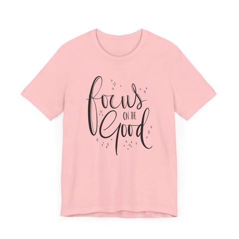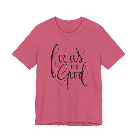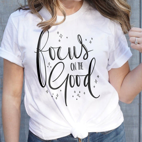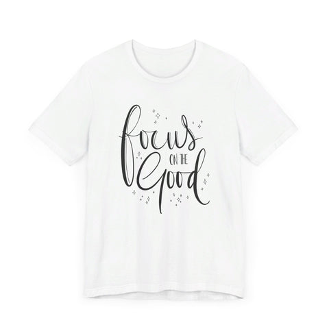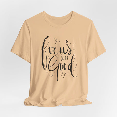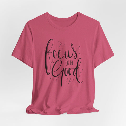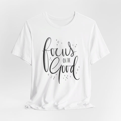 Introducing the Focus On The Good Tee - a simple yet powerful way to stay centered and positive throughout the day. Made with soft, breathable fabric, this tee is perfect for any occasion and serves as a reminder to keep your focus on the good. Stay mindful and stylish with this must-have piece.